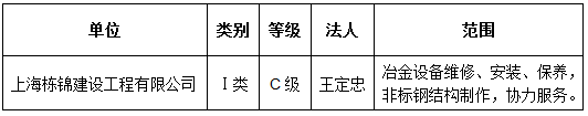 根据《上海市设备维修安装企业能力等级分类办法》(沪设协【2018】2号),经上海市设备管理协会维修市场管理办公室审核,对上海栋锦建设工程有限公司拟核发《上海市设备维修安装企业能力等级证》,为保证审核工作的公正性,增加工作的透明度,现将该企业拟获证的类别、等级及业务开展范围等予以公示,以广泛接受社会监督。公示时间为:2023年2月21日至27日,如有不同意见,请在公示期间以书面形式将反映的情况寄(送)至上海市设备管理协会(邮寄的材料以到达日邮戳为准)。单位反映情况需加盖公章,个人反映情况需签署真实姓名,并留下真实的联系电话、地址和邮政编码。