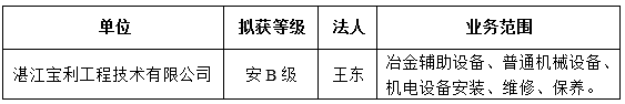 根据《上海市设备维修安装企业安全生产合格证等级评定办法》(沪设协(2018)5号),经上海市设备管理协会维修市场管理办公室评定,对湛江宝利工程技术有限公司拟核发《上海市设备维修安装市场安全生产合格证》,为保证评定工作的公正性,增加工作的透明度,现将该企业拟获合格证的等级和业务开展范围等予以公示,以广泛接受社会监督。公示时间为:2025年10月09日至14日,如有不同意见,请在公示期间以书面形式将反映的情况寄(送)至上海市设备管理协会(邮寄的材料以到达日邮戳为准)。单位反映情况需加盖公章,个人反映情况需签署真实姓名,并留下真实的联系电话、地址和邮政编码。